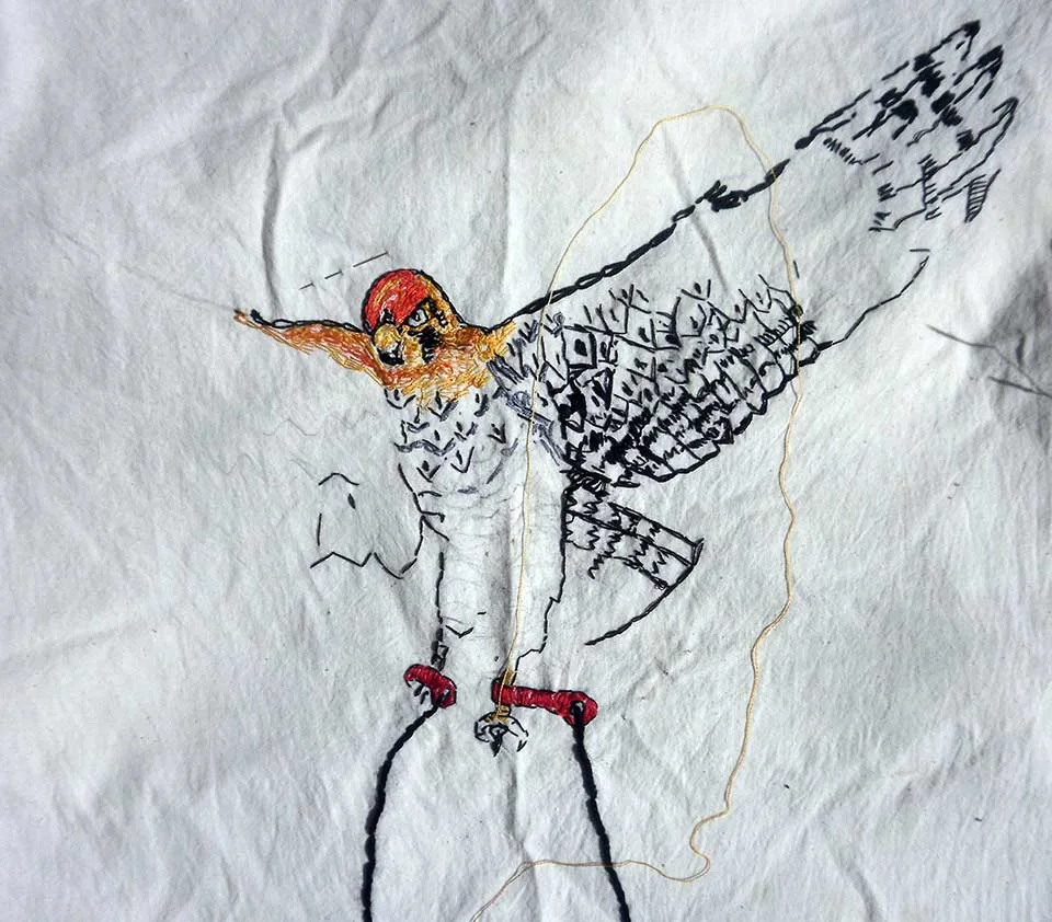 Spirit Lion. Muslin bandage and embroidery silk on fabric. (2010)